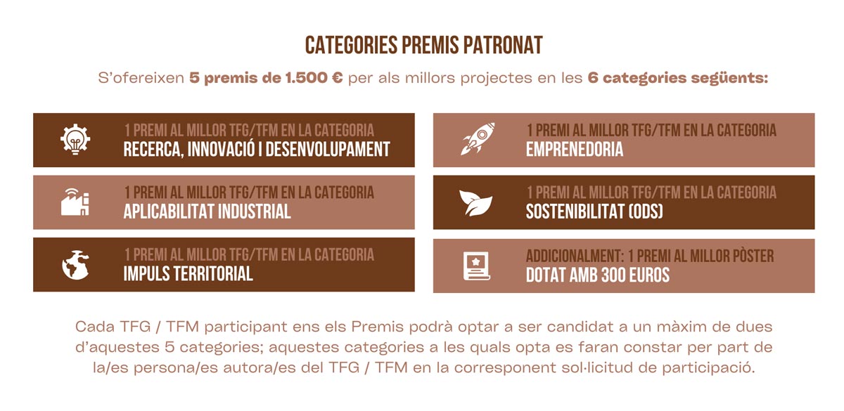 En aquesta 32a edició hi haurà dues fases de candidatura i participació dels TFG/TFM en els Premis Patronat: