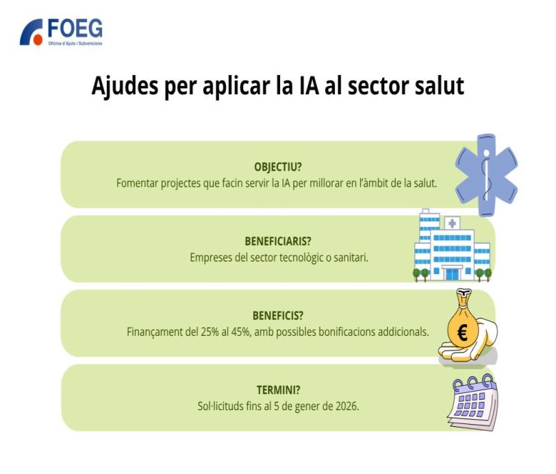 • Entitats Beneficiàries: Empreses del sector tecnològic + salut amb projectes innovadors en IA.